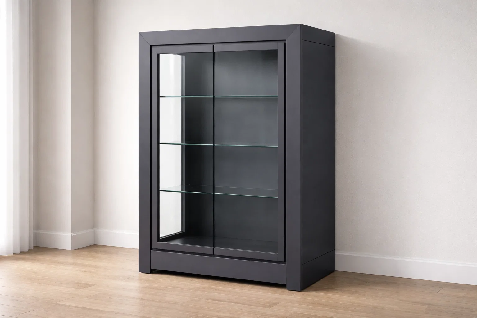 Vitrine mdf glas metall schwarz 180x100x40 cm